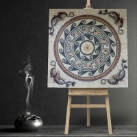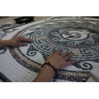 Rodzaj mozaiki: Mozaika dekoracyjna marmurowa — geometryczne wzory, spirale, rękodzieło